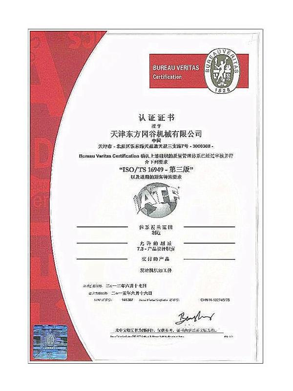 • TS16949質量體系證書